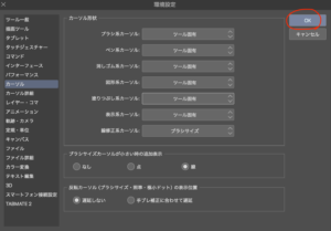 ④下記の画像のように自分が変えたカーソルがツール固有になってるのを確認したら、OKをクリック。